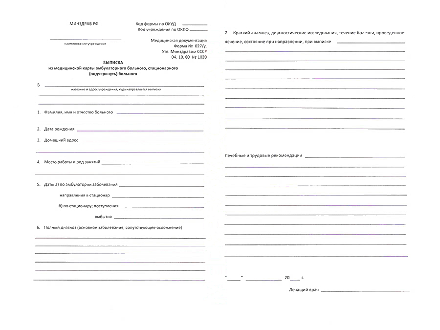 | справка форма 095/у | справка форма 027/у | заключение КЭК |